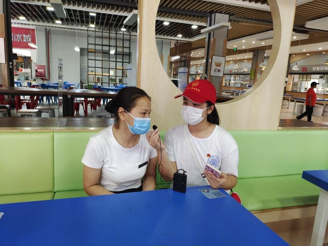 党委书记欧玲、党委副书记魏世平、团委书记汪俣婧等领导老师进行了院校的防疫政策咨询。除此之外,实践团还对2020级本科学生王颖和校园内第一食堂的食品安全员叶春明等工作人员进行了随机采访,从各个层面深入了解小黄书
