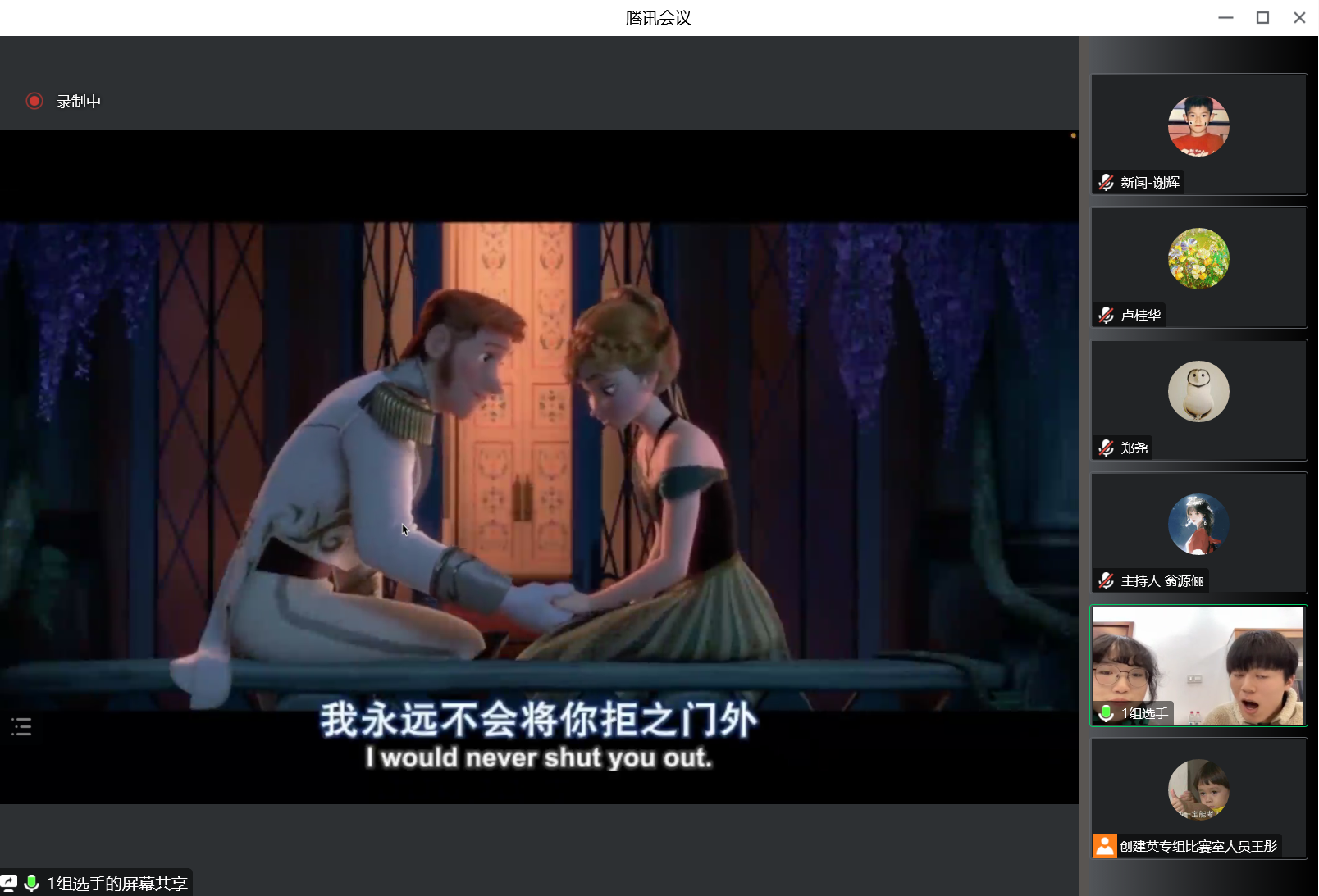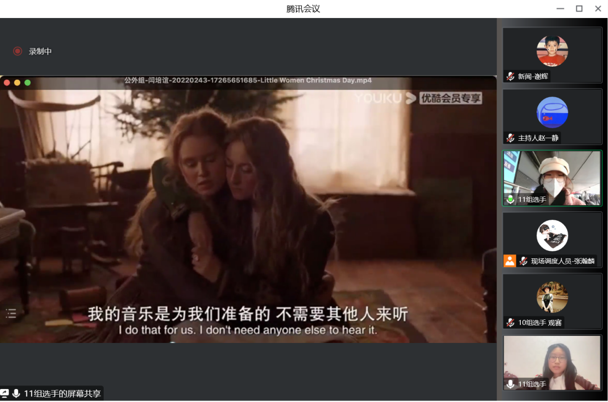 评委老师充分肯定此次比赛并感谢外院团队和工作人员的准备。老师们指出,虽然因疫情形势严峻无法在线下举行外文配音大赛,但线上的形式使配音表演更具沉浸式体验感,使他们可以充分了解影片与角色本身,仔细感受选手们的语音语调。从角色贴合度、发音欠佳到语言表现张力到位、情感十分饱满的变化,展现了热情奔放、沉着自信、不惧挑战、迎难而上的重大学子风采。