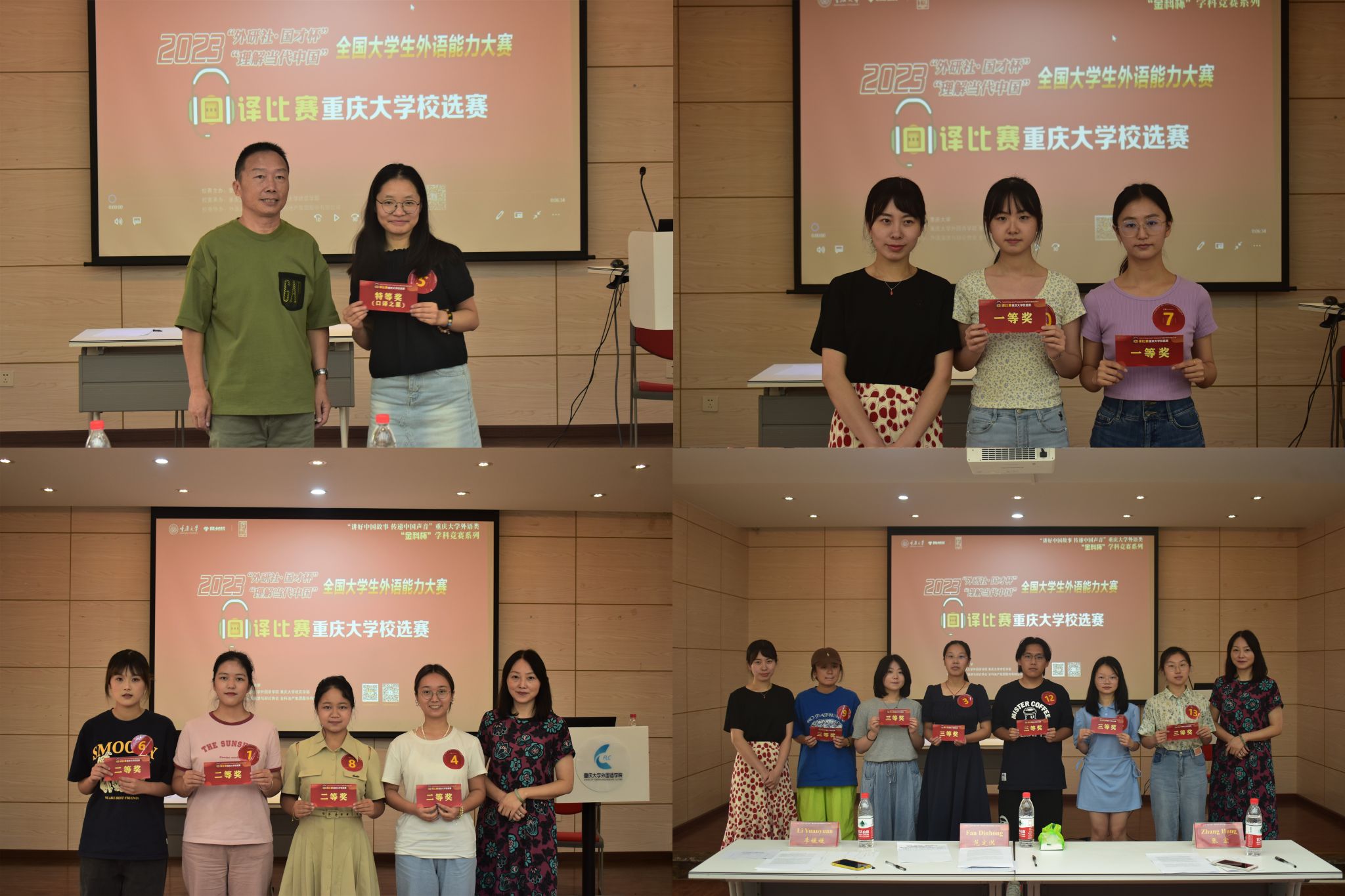 经过线上线下两阶段的激烈角逐,英语专业组评选出特等奖2名、一等奖2名、二等奖3名、三等奖5名、优胜奖5名,非英语专业组评选出特等奖2名、一等奖6名、二等奖11名、三等奖12名。