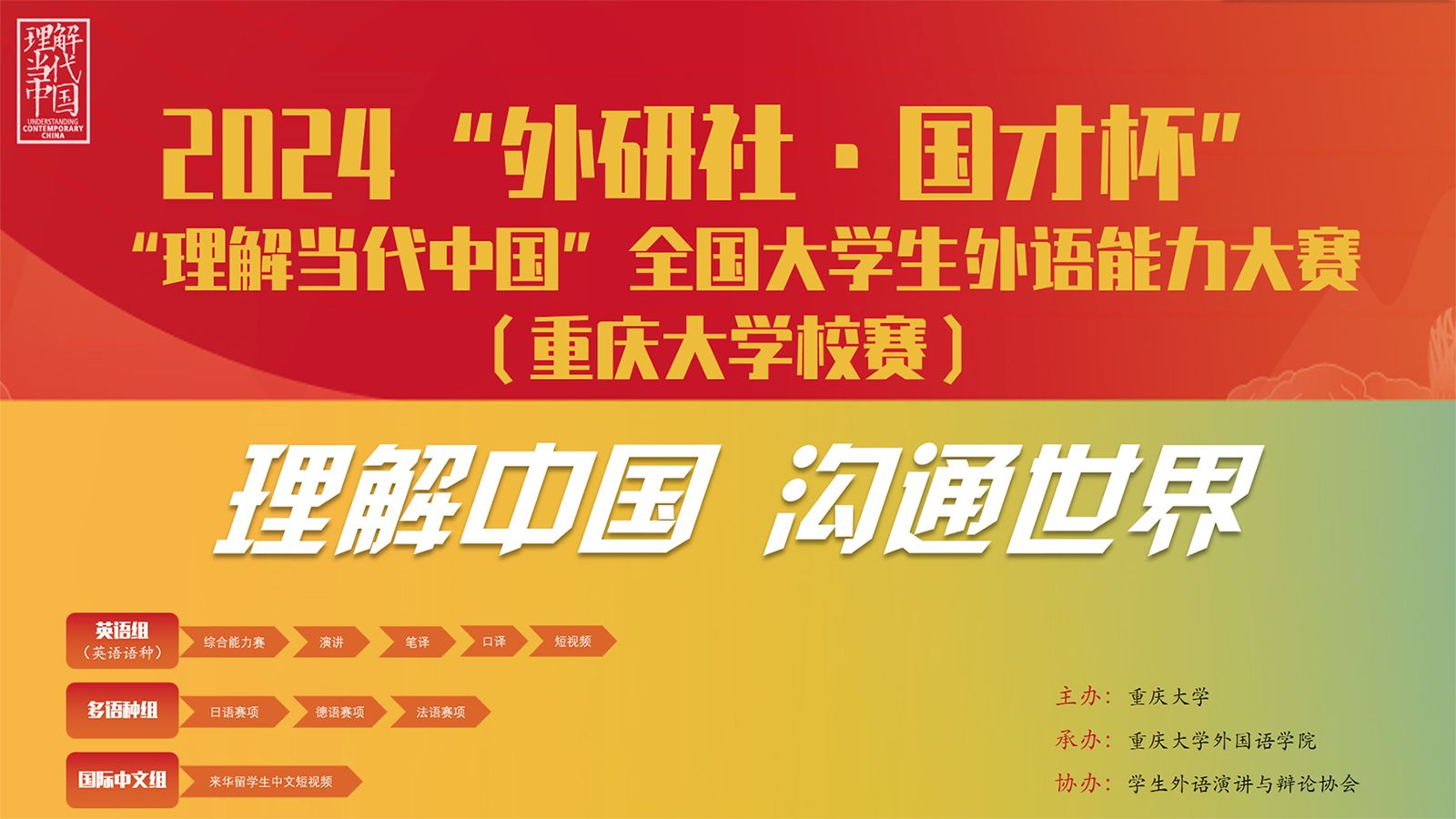 2024年5月-8月,2024“外研社·国才杯”“理解当代中国”全国大学生外语能力大赛系列赛项校选赛先后在小黄书