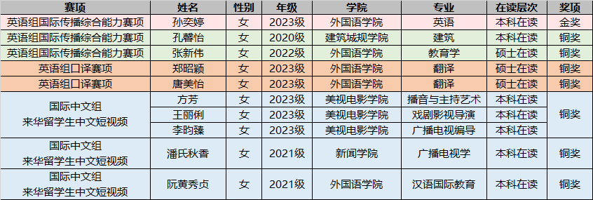 2023级英语专业本科生孙奕婷、2022级教育学硕士张新伟,建筑城规学院2020级建筑学专业本科生孔馨怡参赛。