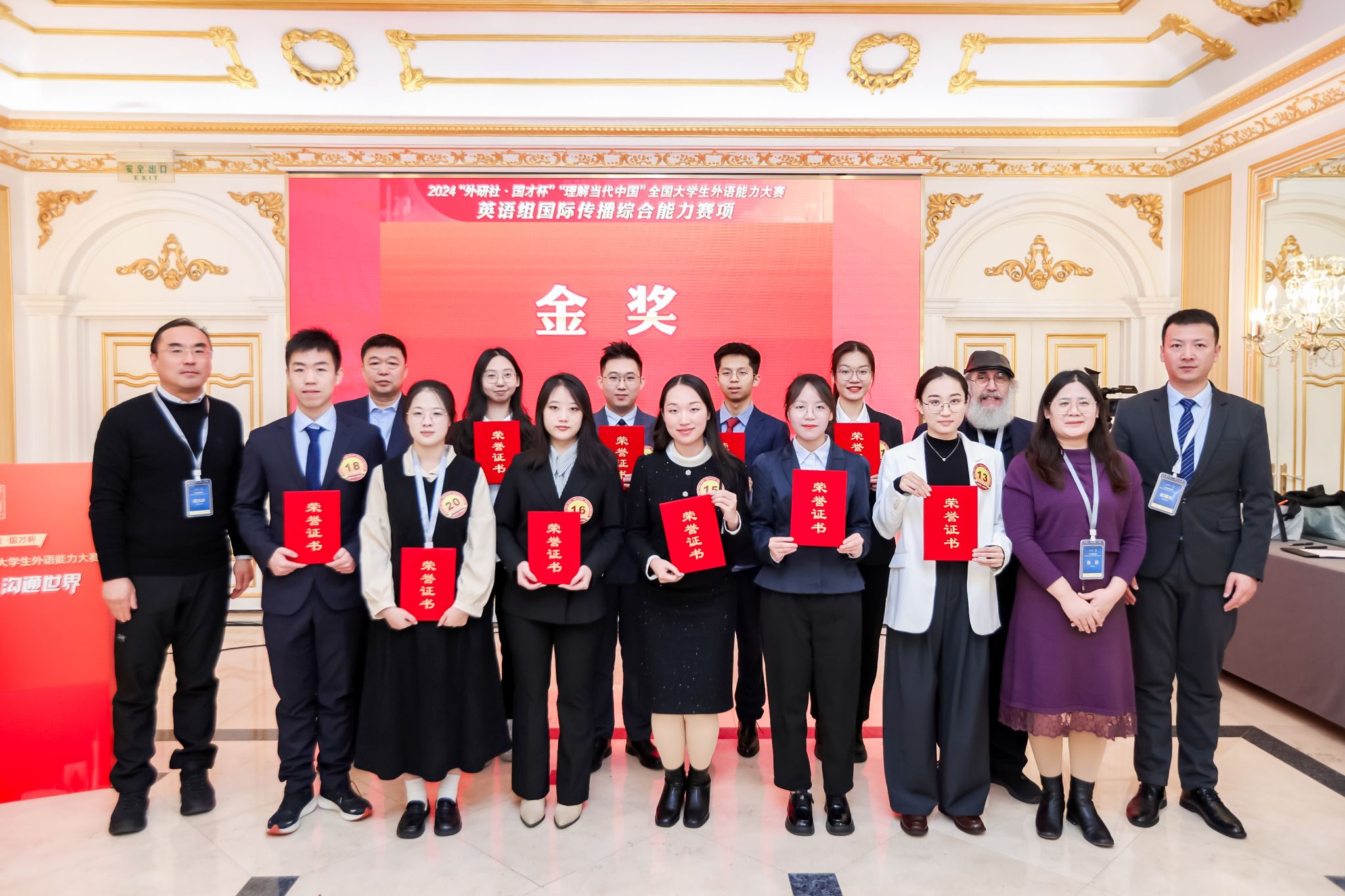 2024年12月9日,2024“外研社·国才杯”“理解当代中国”全国大学生外语能力大赛国赛在北京圆满落幕。4000余名国赛选手在一场场激动人心的竞技中,用外语讲述中国发展变迁,展现多元文化风采,尽显理解中国、沟通世界的青春力量,搭建交流合作、互学互鉴的友谊桥梁。我校选手凭扎实的外语功底与出色的跨文化交际能力,在英语组国际传播综合能力赛项、口译赛项以及国际中文组留学生中文短视频赛项三大赛项中获得金奖1项、铜奖7项。