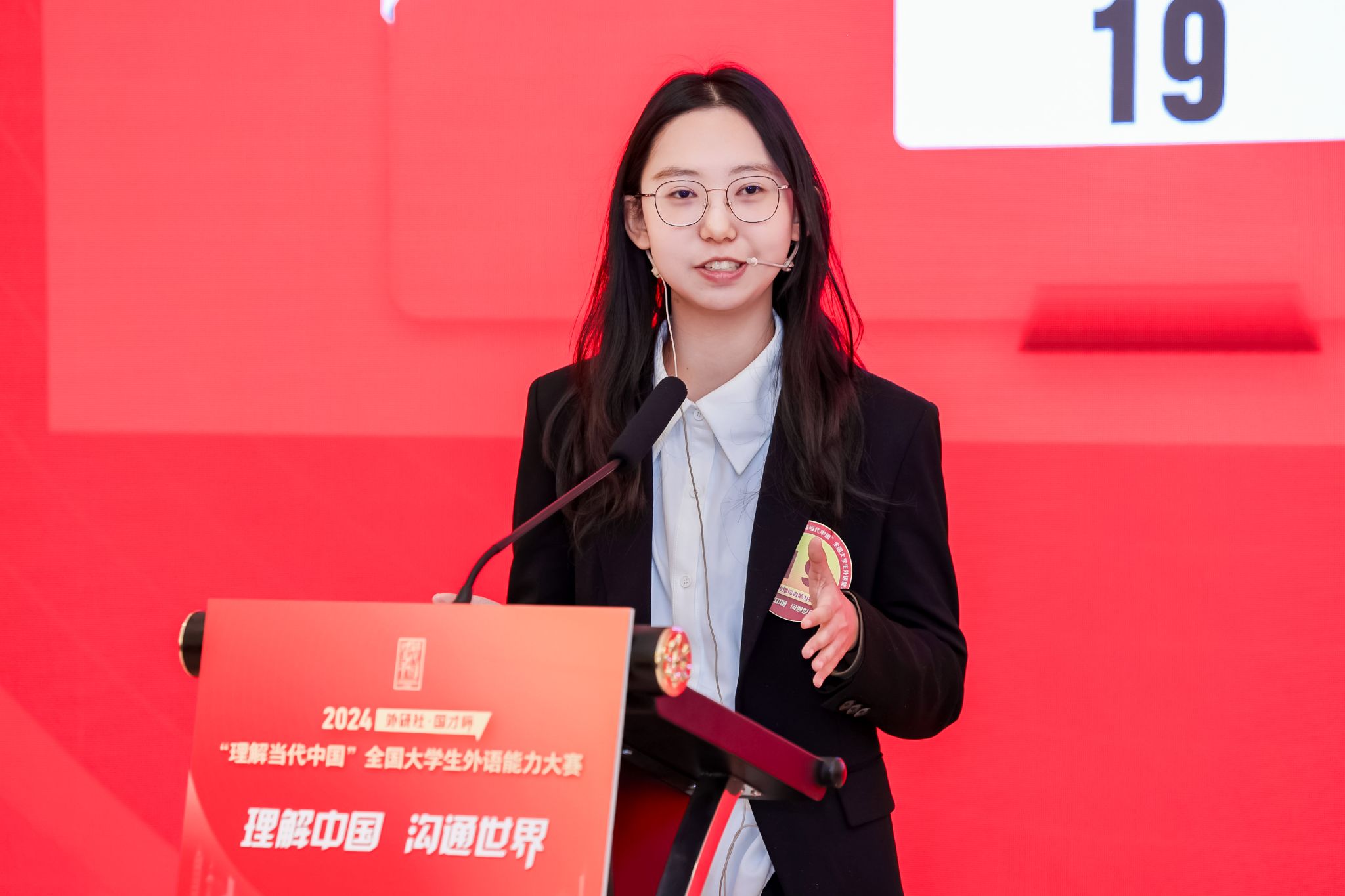 英语组国际传播综合能力赛项通过阅读、翻译、写作等多种题型,以及定题演讲和即兴演讲、即兴问答等多种形式,在多赛段比拼中加强对国际传播实战能力的考查。我校小黄书