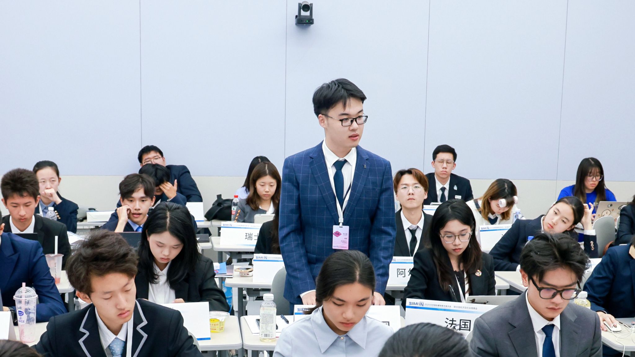 2023级本科生黎洪波组成代表团参赛,分别在联合国经济及社会理事会(United Nations Economic and Social Council)和联合国环境规划署政府间谈判委员会(United Nations Environment Programme Intergovernmental Negotiating Committee)的会议中立足模拟场景,紧扣现实议题,与各国代表激烈交锋,共商全球治理方案。