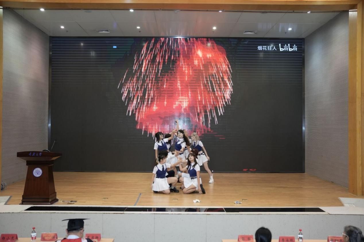 典礼伊始,一段由2025届毕业生精心制作的视频带领全场回顾了大学生活的点滴瞬间。随后,毕业生们以一段活力四射的舞蹈和多语言歌曲串烧点燃了现场气氛,展现了外院学子的才华与激情,也为典礼拉开序幕。