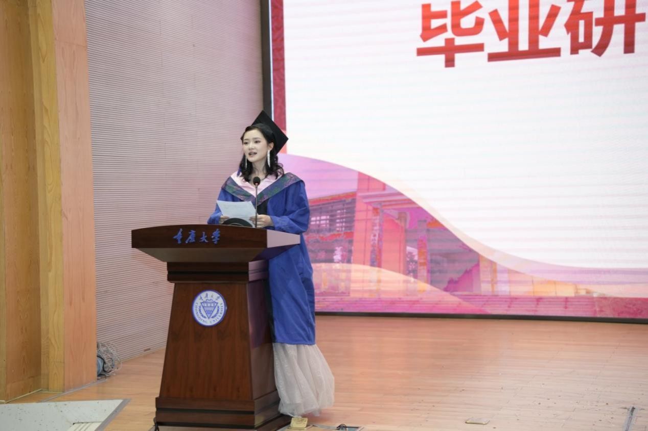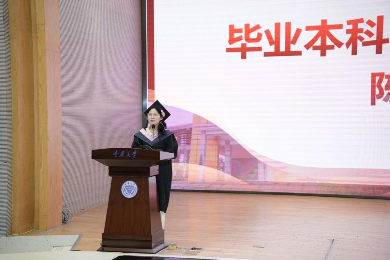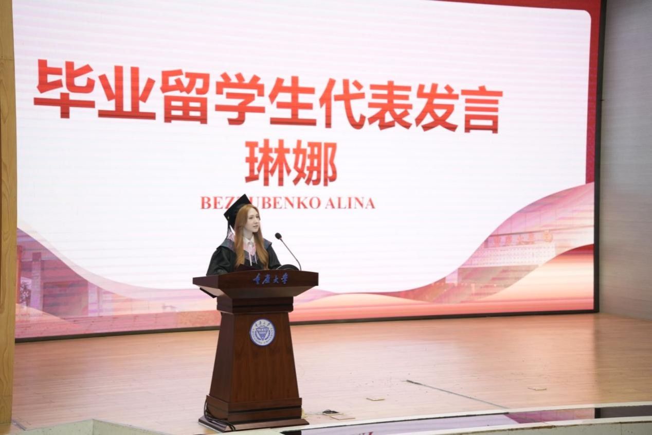 学子心声,满怀感恩与誓言。研究生代表周艳婷分享从本科到研究生的蜕变历程,誓言以语言为窗,勇敢面对未来;本科生代表陈博将专业学习比作“打怪升级”,呼吁同窗“立足当下,绽放光彩”;来自白俄罗斯的留学生琳娜以流利中文讲述从“中文小白”到毕业生的成长,深情告白:“无论身在何处,我们永远是重大人。”