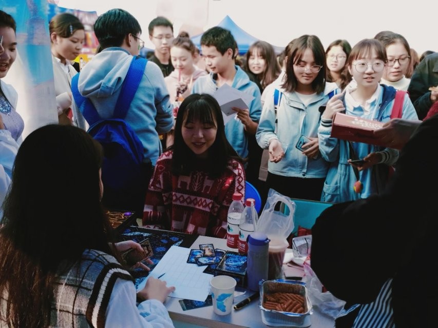 在精彩的表演之后,各展台还开展了丰富多彩的游园活动。法国展台前开展了大型飞行棋、欢乐套圈、踩气球游戏活动,优胜者获得了鲜花奖励;俄罗斯班展台开展了飞花令、萝卜蹲、“悬头贴贴贴”、俄罗斯冷知识比拼等活动;韩国展台开展了“心有灵犀”、“向左向右看”、“正话反说”等趣味游戏;意大利展台进行了服饰展示、DIY彩蛋面具、塔罗牌占卜、知识竞赛等活动;德国展台开展了德国黑啤介绍、猜德语单词、“心有灵犀”等活动;日本展台则开展了关东煮品尝、御守制作等活动。