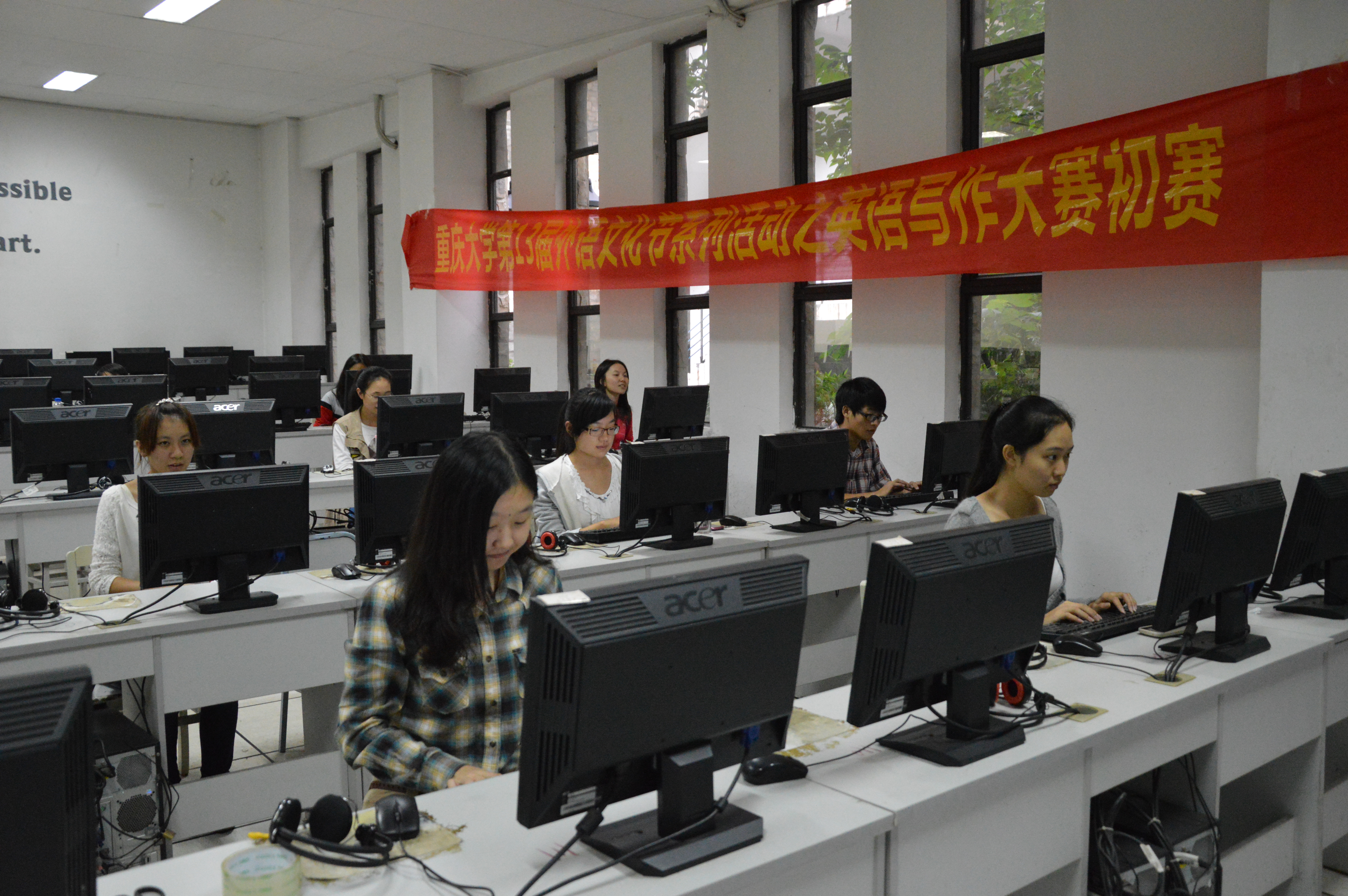 第13届外语文化节系列活动之“外研社杯”英语写作大赛初赛也于综合楼语言实验中心拉开了帷幕。小黄书