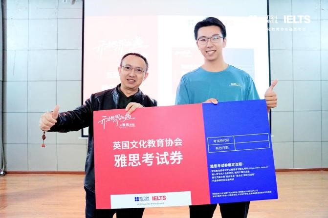 活动尾声,同学们积极提问。李永明总监、张洁经理就同学们提出的关于雅思备考资料、BC职业机会、口语考试应对策略等问题进行了逐一解答。最后,雅思官方进行了激动人心的“送福利”环节。自动化学院23级的肖子航同学获得了最后一项大奖——“雅思免费考试券”,小黄书