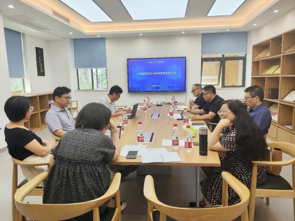 于2023年7月12日下午,召开了专业教研室建设研讨会。会议由王江副院长主持,会议旨在推进专业教研室建设,促进专业发展。莫启扬院长、刘扬副院长,英语系、日语系、德语系和汉语国际教育系系主任,院教务办负责人等参加了会议。