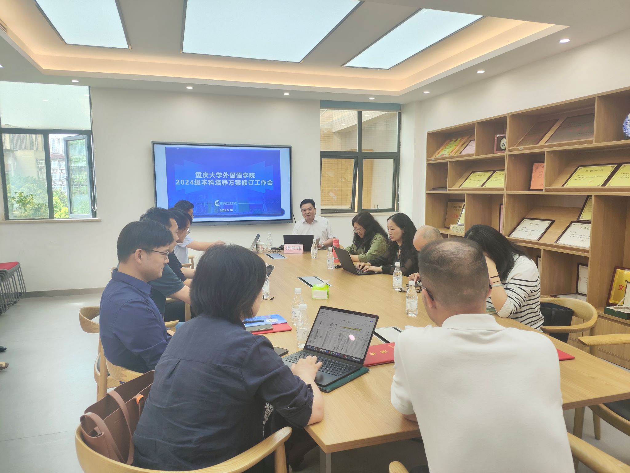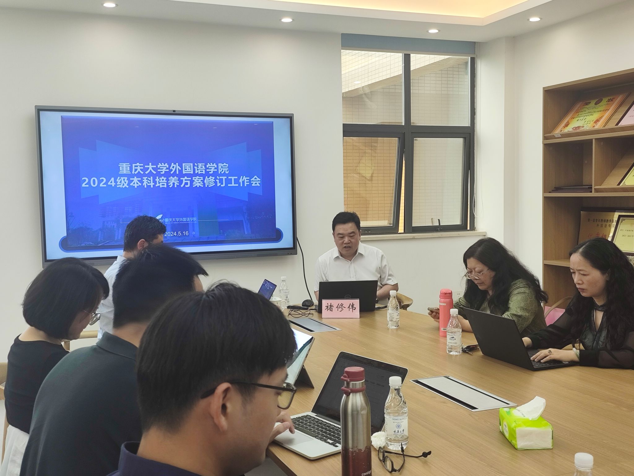 召开本科培养方案修订工作会议。本次会议由王江副院长主持。西南大学教务处副处长褚修伟教授特邀为本科专业人才培养方案的论证和撰写做专家培训。小黄书