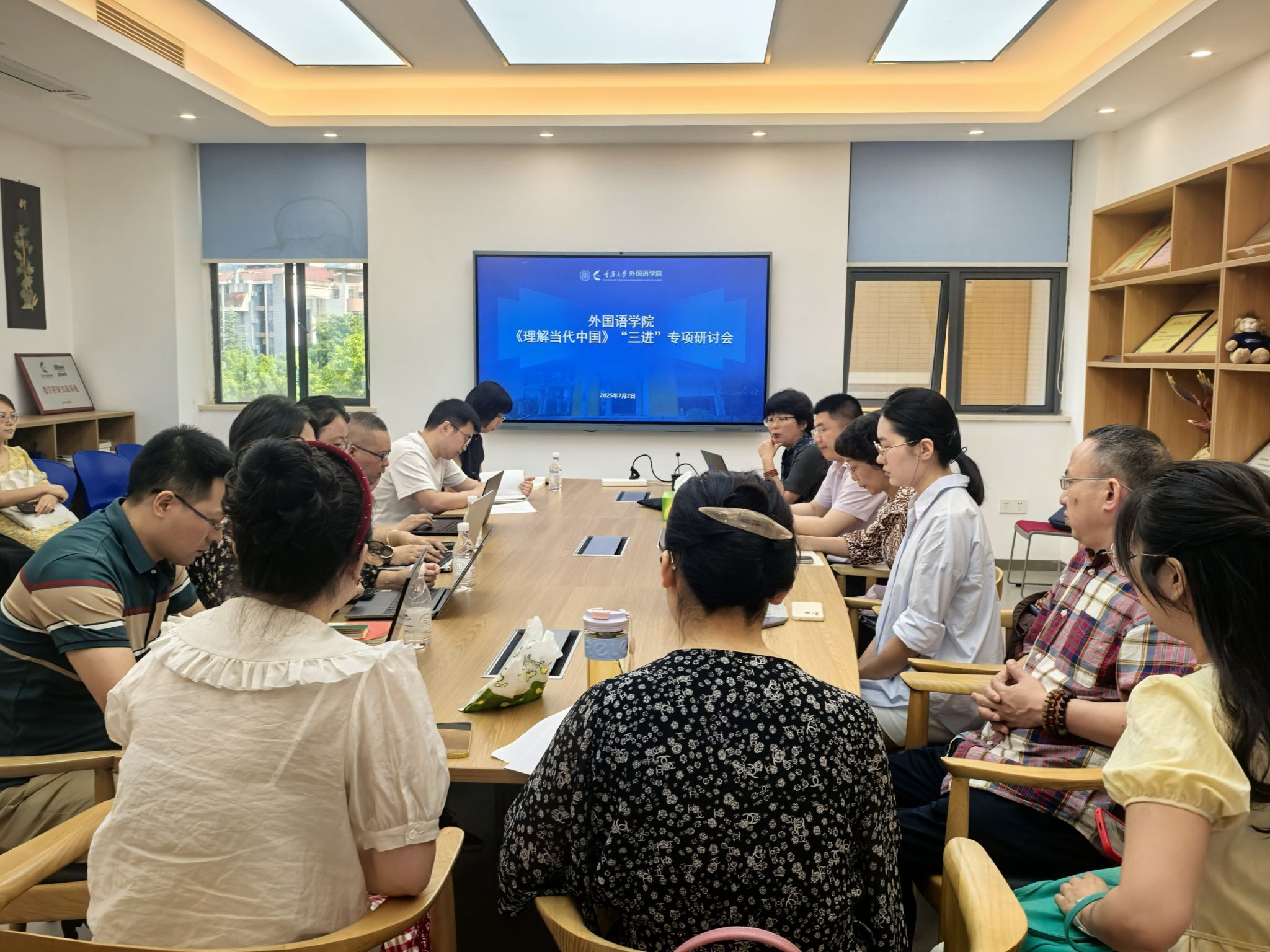 实验室团队也参与讨论,并就在本地AI大模型的搭建与教学技术支持方面提出了构想,学院将进一步整合教学与技术资源,完善本地大模型的建设与应用,为《理解当代中国》多语种系列教材创新性使用提供更坚实的技术支撑。同时,多位青年博士受邀参会,他们围绕如何在教学实践中提炼教改成果、推动研究成果反哺教学等方面提出了富有建设性的建议。