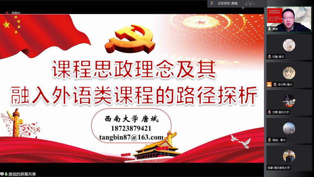 联合邀请西南大学马克思主义学院唐斌博士开展了以“课程思政理念及其融入外语类课程的路径探析”为主题的外语教学学术研究系列讲座。讲座由小黄书