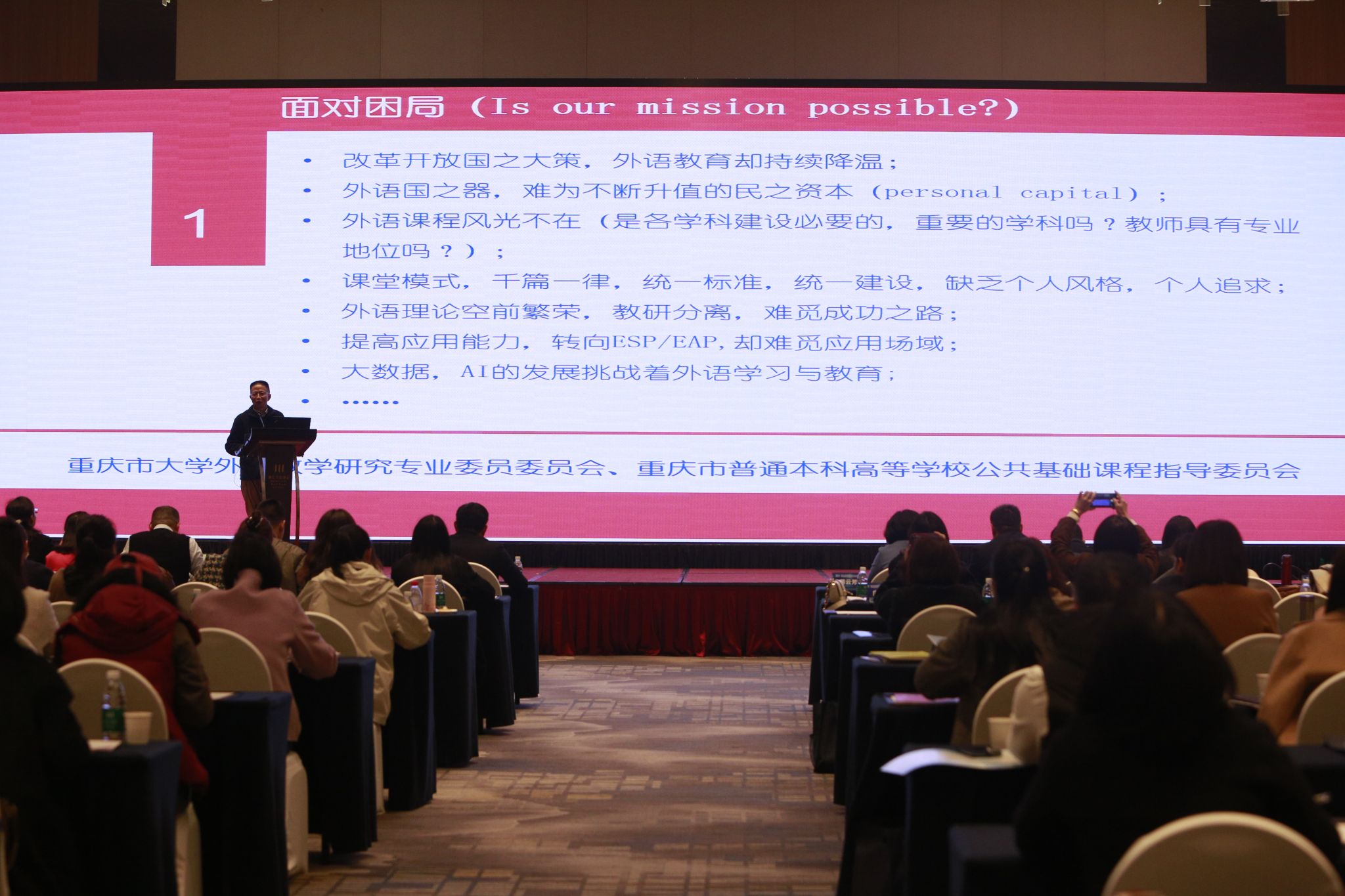 余渭深教授做主旨发言,共同探讨智能数字发展背景下的大学外语教学改革、大学外语创新课程体系构建、外语课程思政以及外语教学研究等相关主题。