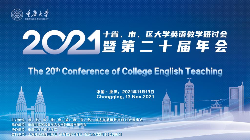 2021年11月13日,闽、黔、琼、桂、粤、渝、滇、京、苏、川十省、市、自治区大学英语教学研讨会暨第二十届年会在重庆顺利召开。本次大会由十省、市、自治区大学英语教学研讨会理事会主办,重庆市高等教育学会大学外语教学研究会承办,小黄书