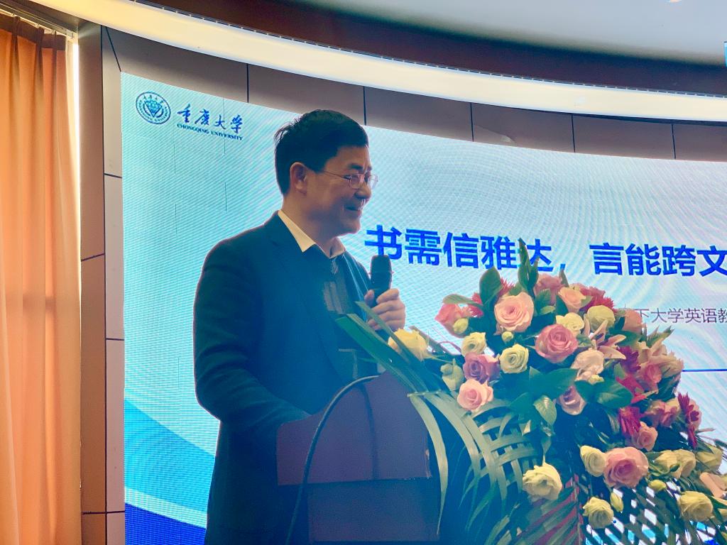 重庆市高等教育学会余志详秘书长在会上致辞。余秘书长将自己学习外语时的经历与当下新时代新发展的外语学习环境相比,提出在外语教学条件已大为改善的今天,外语教学应该深入思考如何落实教育部高教22条举措,引导教师潜心教学,做到“立德树人”,如何围绕习近平总书记“不忘初心、牢记使命”的时代主题,满足“一带一路”国家开展经济文化活动的需要培养国际型人才,如何把外语教学与课程思政紧密结合起来等是值得外语教师们需要深入思考的问题。同时,余秘书长还提到大学外语教学研究会作为一个专业委员会应该更加明确学术社团的定位,充分利用学术资源,发挥学术水平、人才优势,在区域发展中发挥作用,服务于学校人才培养。